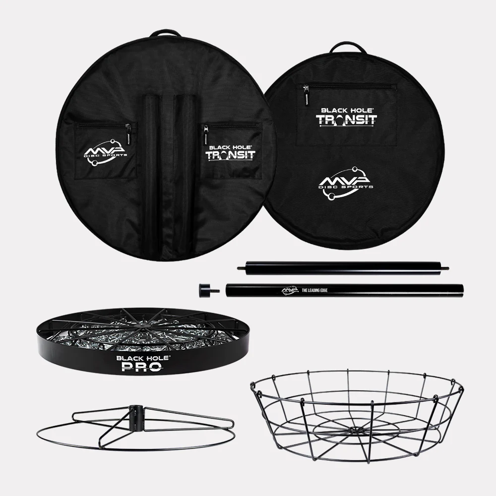 The Black Hole® Pro perfectly combines quality, portability, and value. Ideal for all levels of players looking to improve, the Black Hole® Pro has proven to be the most popular practice basket on the market. For added convenience and protection for your basket, the Black Hole® Transit is included with this package. This ultra durable bag features two pole slots, two storage pockets, and is constructed with heavy-duty woven nylon to store and protect your basket on the way to the field or course.